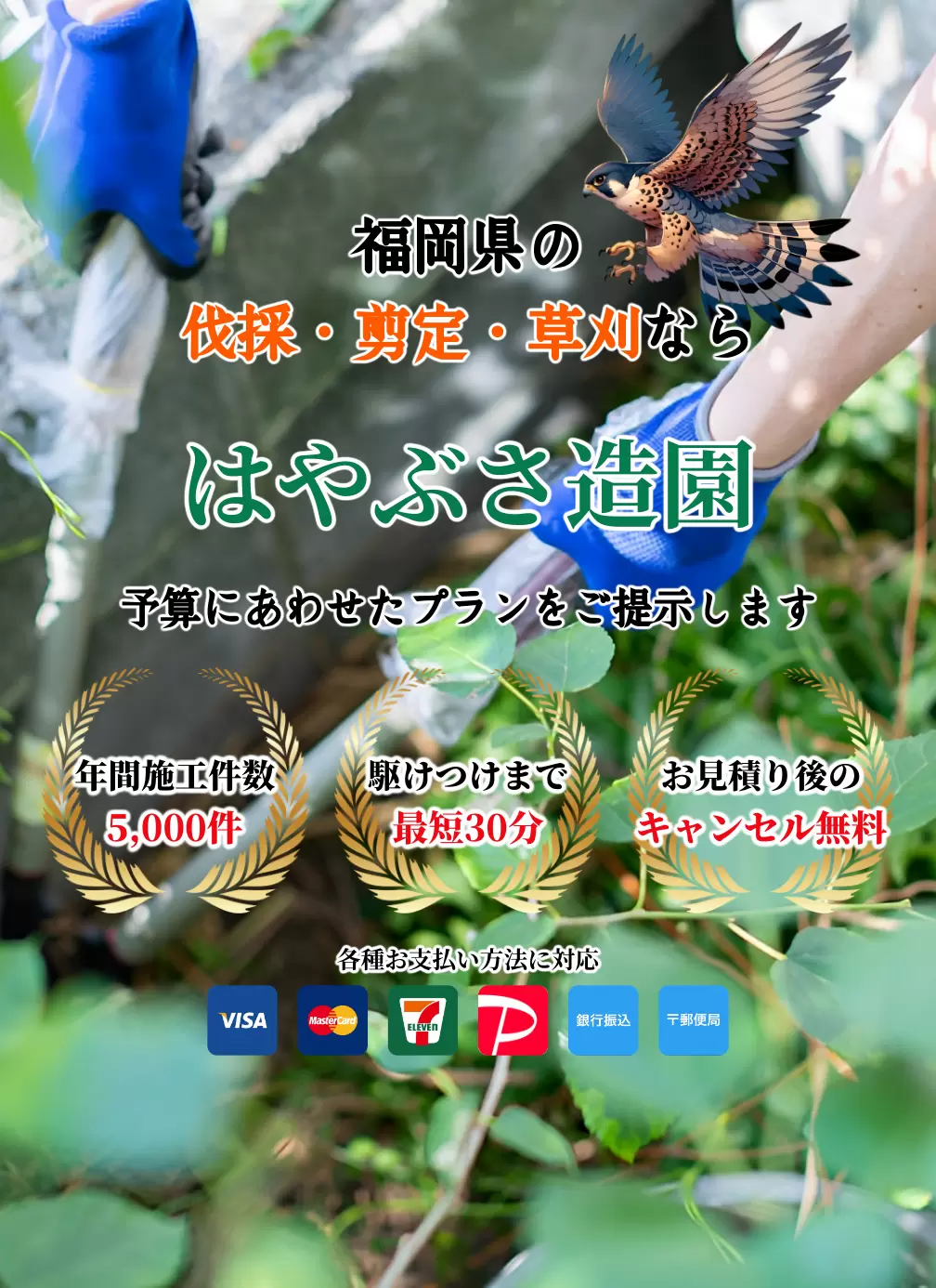 多くのお客様からご依頼をいただき、年間で5,000件以上の実績を誇ります。伐採・剪定・草刈りなどの幅広い対応力で様々なニーズにお応えしています。